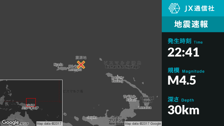 | 震源地 | パプアニューギニアのLorengauから東北東111kmの地点 |