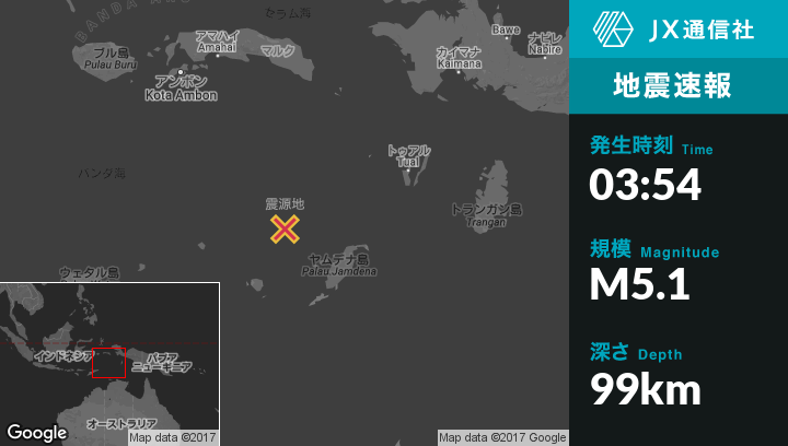 | 震源地 | インドネシアのSaumlakiから北西180kmの地点 |