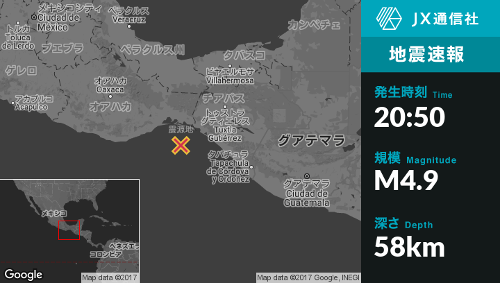 | 震源地 | メキシコのSan Francisco del Marから南南東62kmの地点 |