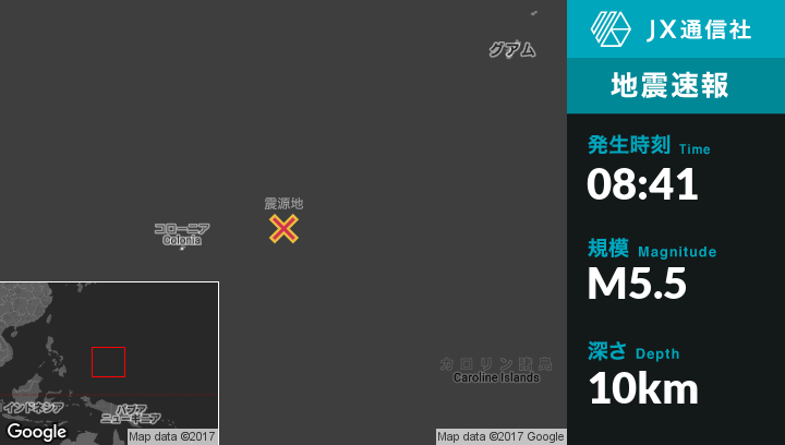 | 震源地 | ミクロネシアのFaisから北西50kmの地点 |