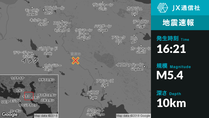 | 震源地 | イランのMehranから東27kmの地点 |