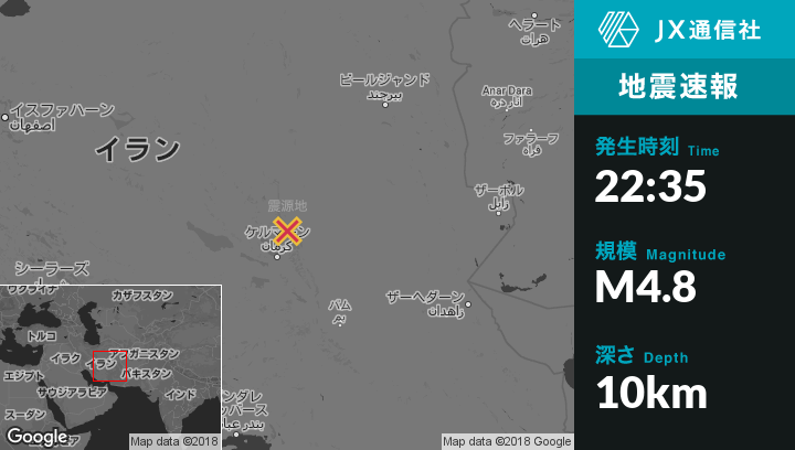 | 震源地 | イランのKermanから北北東63kmの地点 |