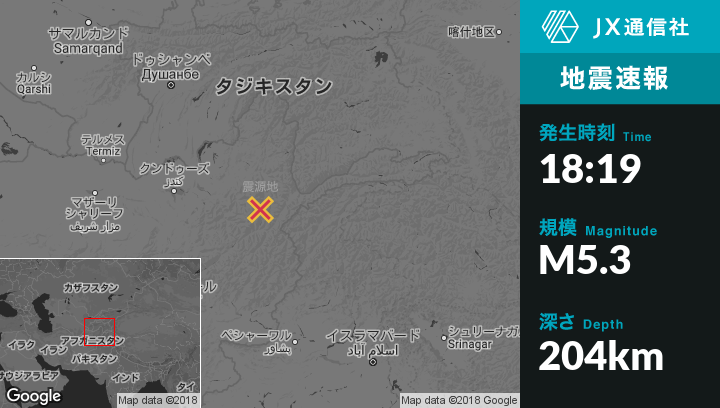 | 震源地 | アフガニスタンのJarmから南42kmの地点 |