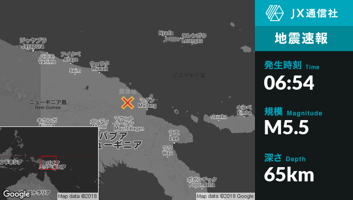 | 震源地 | パプアニューギニアのMadangから西北西110kmの地点 |