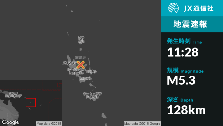 | 震源地 | バヌアツのLuganvilleから北東50kmの地点 |