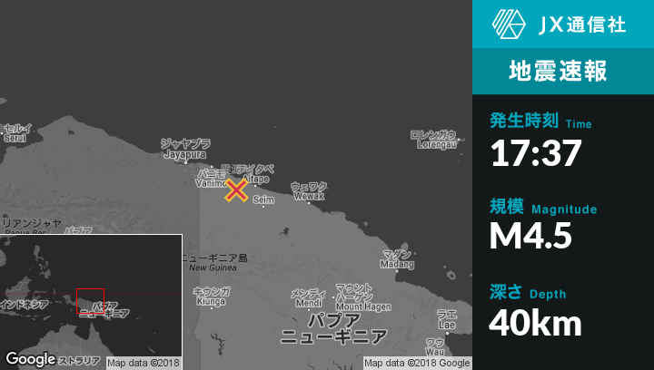 | 震源地 | パプアニューギニアのAitapeから西50kmの地点 |