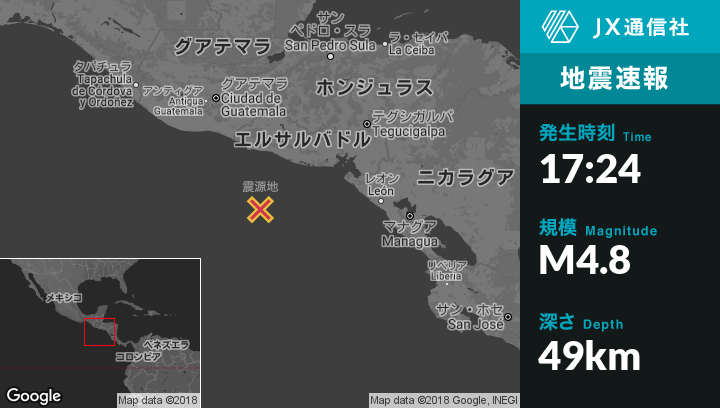 1月16日 17:24頃、エルサルバドルのLa Libertadから南126kmの地点でM4.8の地震がありました。