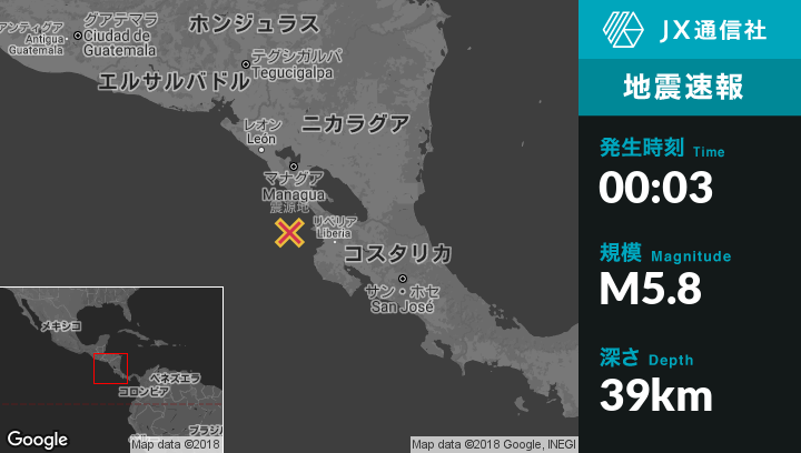 | 震源地 | ニカラグアのSan Juan del Surから南西61kmの地点 |