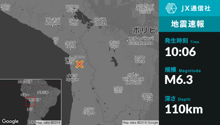 1月21日 10:06頃、チリのPutreから南76kmの地点でM6.3の地震がありました。