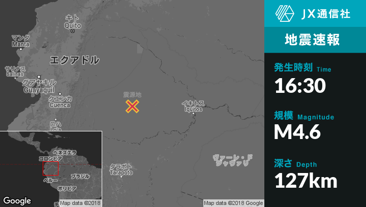 1月21日 16:30頃、ペルーのBarrancaから北北東188kmの地点でM4.6の地震がありました。