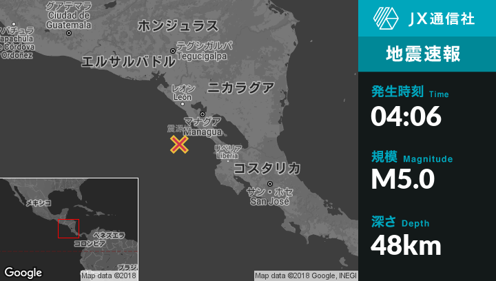| 震源地 | ニカラグアのMasachapaから南西76kmの地点 |
