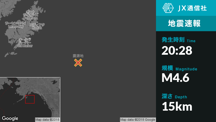 | 震源地 | アラスカのKodiakから南東249kmの地点 |