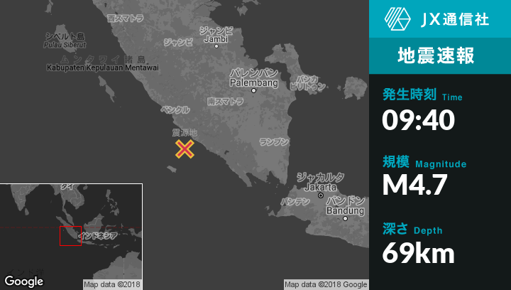 | 震源地 | インドネシアのPagaralamから南西100kmの地点 |