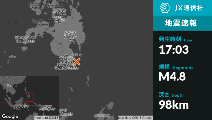 | 震源地 | フィリピンのCaburanから東南東37kmの地点 |