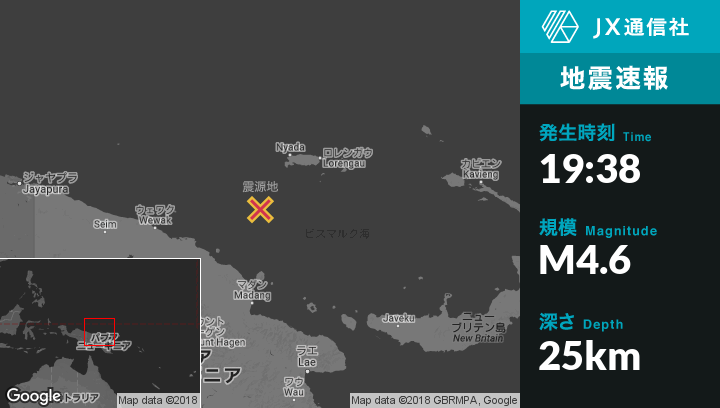 | 震源地 | パプアニューギニアのLorengauから南西184kmの地点 |