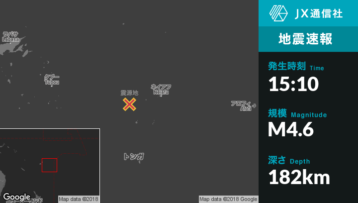 | 震源地 | トンガのNeiafuから西150kmの地点 |