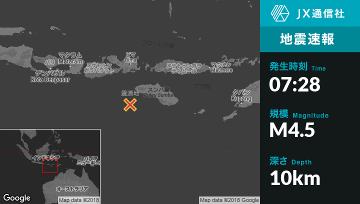 | 震源地 | インドネシアのPanenggoedeから南西61kmの地点 |