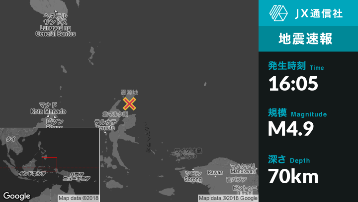 | 震源地 | インドネシアのTobeloから北東66kmの地点 |