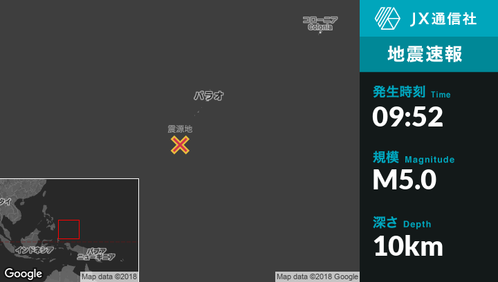 | 震源地 | パラオのAngaur Stateから南南西103kmの地点 |