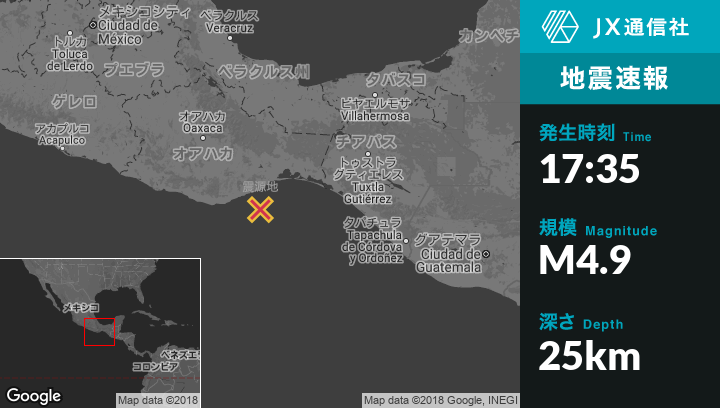 | 震源地 | メキシコのSalina Cruzから南南西61kmの地点 |