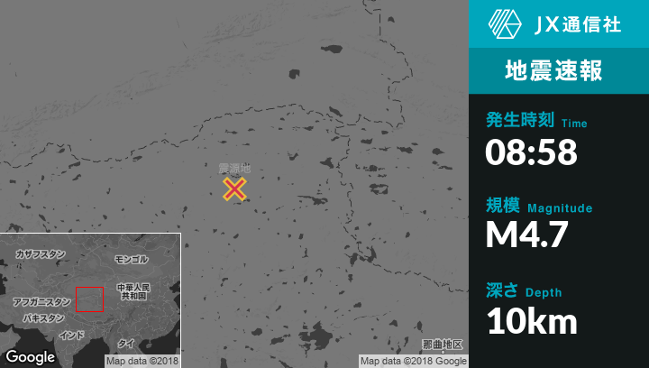2月15日 08:58頃、中国のQiemoから南南東380kmの地点でM4.7の地震がありました。