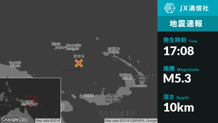 | 震源地 | パプアニューギニアのLorengauから南東163kmの地点 |