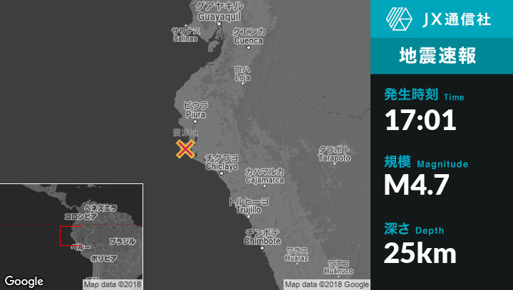 | 震源地 | ペルーのSechuraから南南西41kmの地点 |
