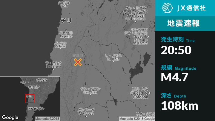 | 震源地 | アルゼンチンのSan Jose de Jachalから北西120kmの地点 |