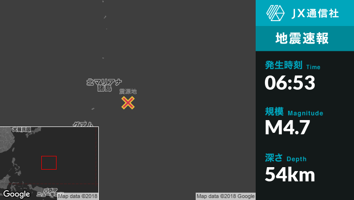 | 震源地 | 北マリアナ諸島のSaipanから南東131kmの地点 |