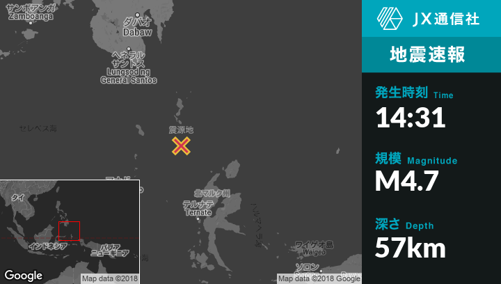 | 震源地 | インドネシアのTobeloから北西207kmの地点 |