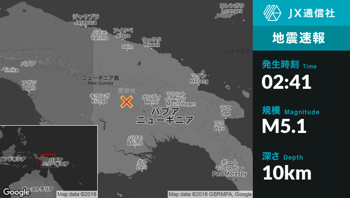 | 震源地 | パプアニューギニアのPorgeraから西南西87kmの地点 |