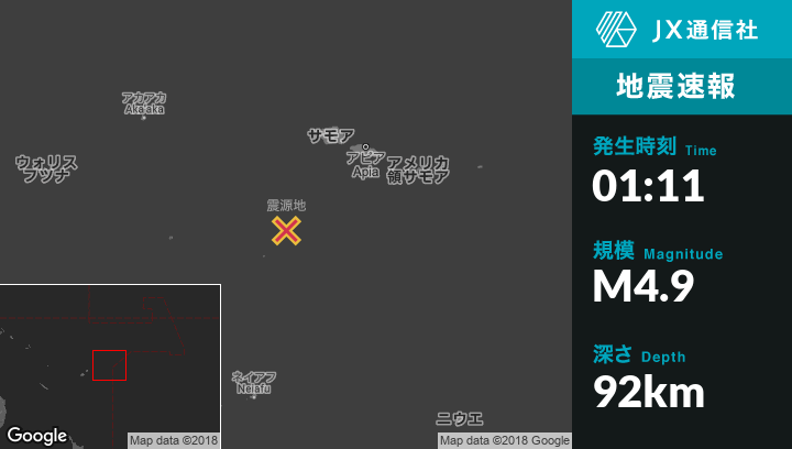 3月03日 01:11頃、トンガのHihifoから北北東80kmの地点でM4.9の地震がありました。
