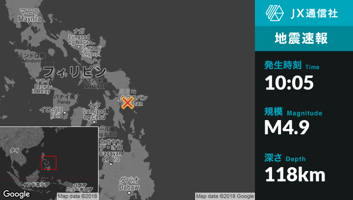 | 震源地 | フィリピンのLawa-anから北北東17kmの地点 |