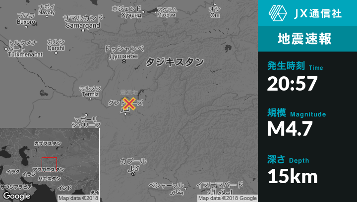 | 震源地 | アフガニスタンのImam Sahibから東南東7kmの地点 |