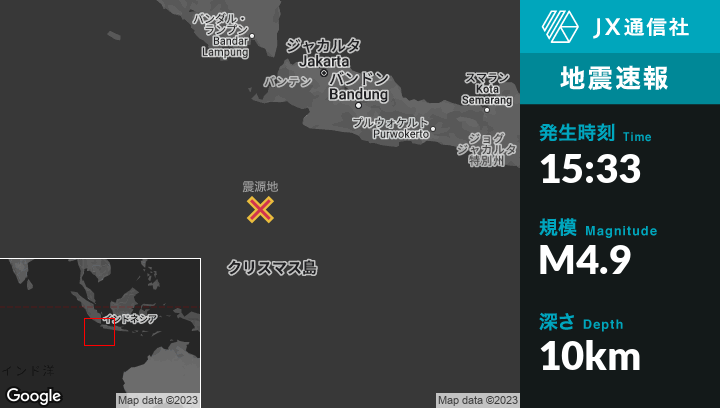 | 震源地 | インドネシアのPelabuhanratuから南南西260kmの地点 |
