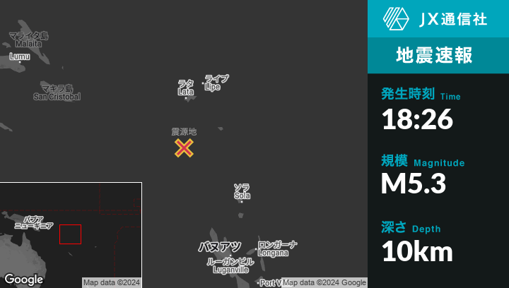 | 震源地 | ソロモン諸島のLataから南154kmの地点 |