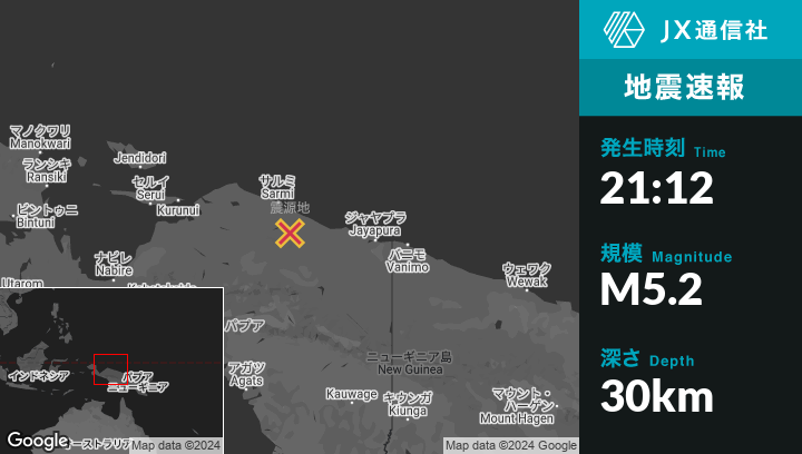 | 震源地 | インドネシアのAbepuraから西186kmの地点 |
