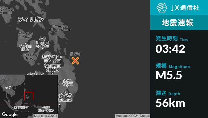 12月28日 03:42頃、フィリピンのUnionから南東34kmの地点でM5.5の地震がありました。