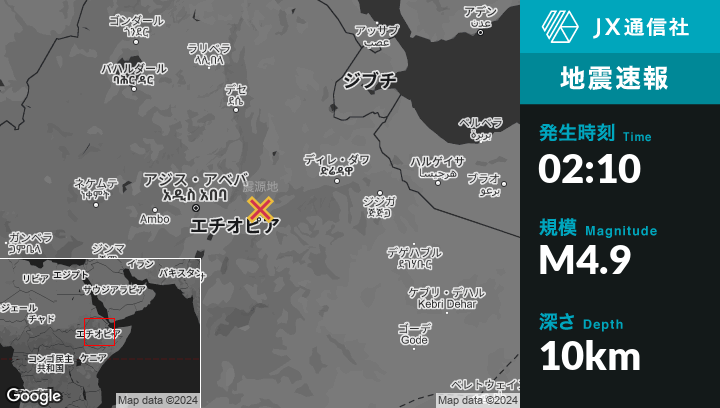 | 震源地 | エチオピアのĀwashから北14kmの地点 |
