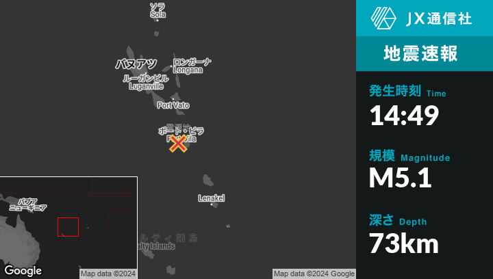 | 震源地 | バヌアツのPort-Vilaから北北西22kmの地点 |
