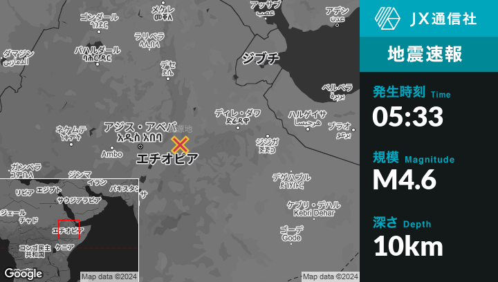 | 震源地 | エチオピアのĀwashから北西27kmの地点 |