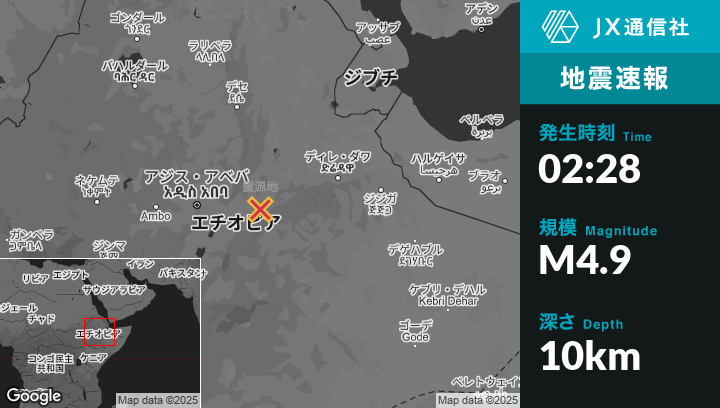 | 震源地 | エチオピアのĀwashから北北西6kmの地点 |
