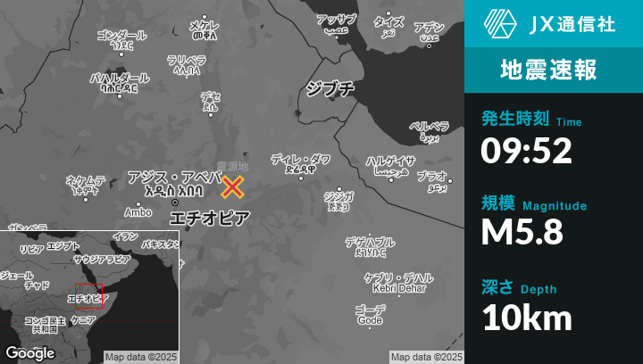 | 震源地 | エチオピアのAbomsaから南南東56kmの地点 |