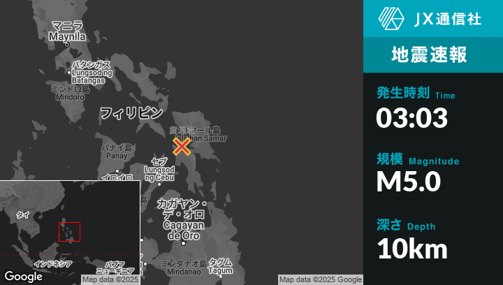 | 震源地 | フィリピンのCaibiranから北4kmの地点 |
