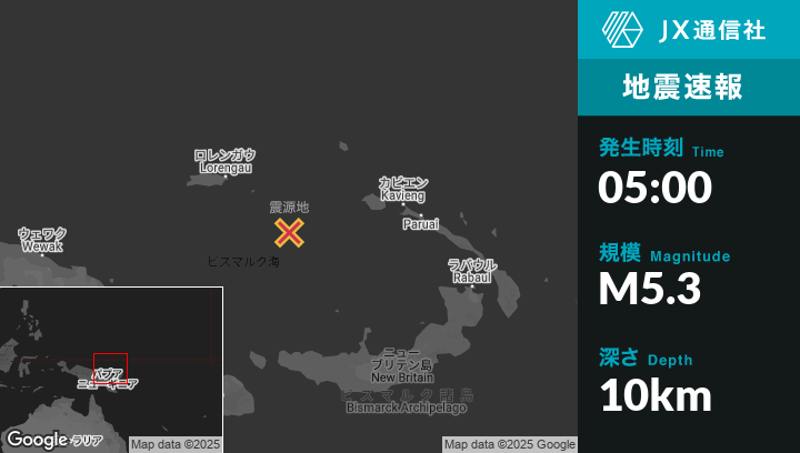 | 震源地 | パプアニューギニアのLorengauから南東176kmの地点 |