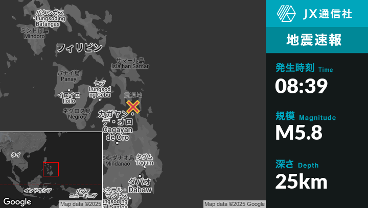 | 震源地 | フィリピンのSan Franciscoから東北東17kmの地点 |