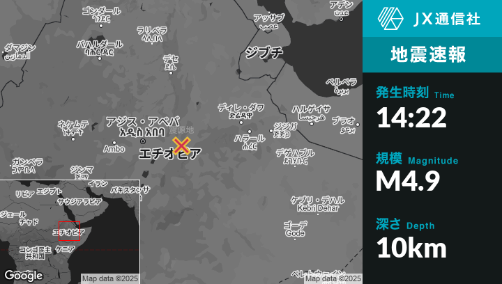 | 震源地 | エチオピアのMetahāraから北北東11kmの地点 |