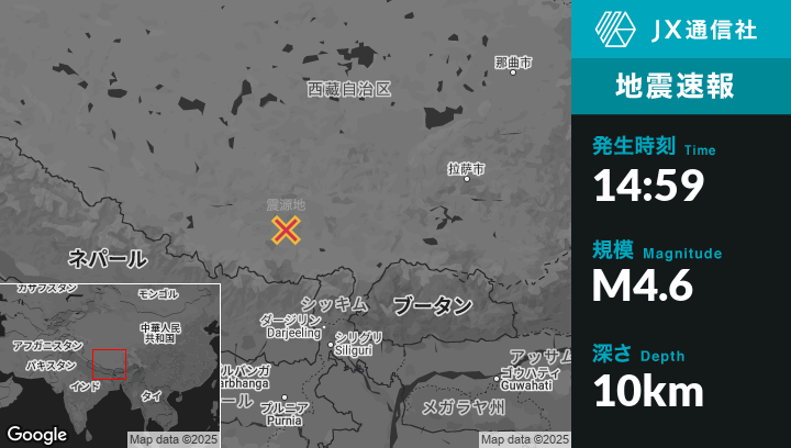 1月24日 14:59頃、ネパールのLobucheから北東121kmの地点でM4.6の地震がありました。
