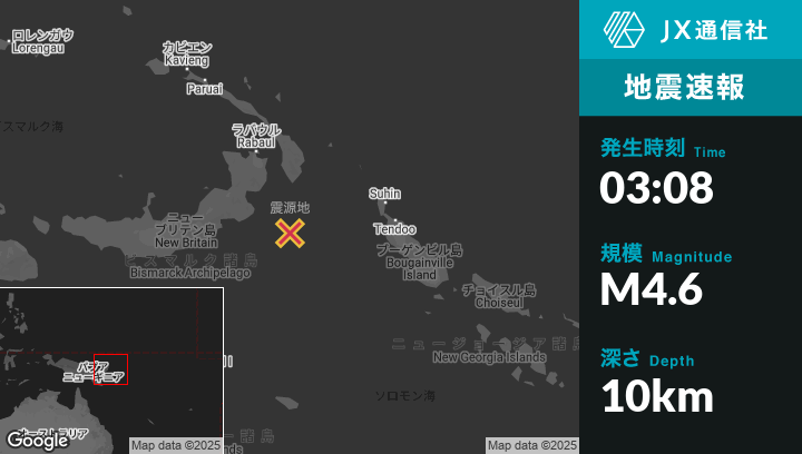 | 震源地 | パプアニューギニアのKokopoから南南東159kmの地点 |