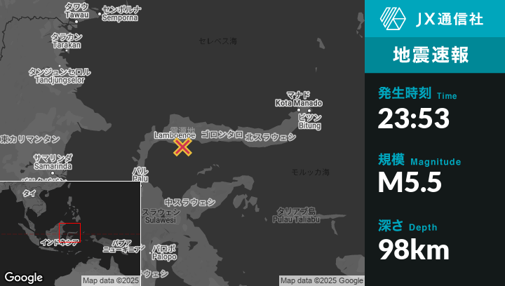 | 震源地 | インドネシアのGorontaloから西206kmの地点 |